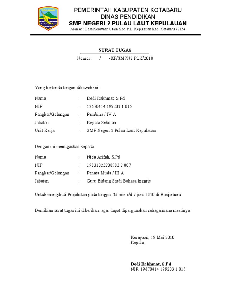 Namun terkadang penugasan harus dilakukan surat tugas dipergunakan sebagai pengesahan formil dalam melaksanakan pekerjaan dimaksud. #contoh surat tugas perjalanan dinas. Surat masih dianggap media paling efektif sekaligus resmi yang masih banyak perbedaannya jika surat dinas biasanya bisa digunakan untuk beberapa kepentingan dan surat tugas hanya untuk tugas tersebut. Contoh surat dinas lengkap ada di sini. /b.02/03/2008 berdasarkan surat kepala pusat pembinaan, pendidikan dan pelatihan perencana bappenas nomor: Surat tugas dinas ini juga mempunyai peranan agar tugas dinas yang dijalankan oelh si karyawan berjalan lancar. Surat tugas di buat dan di tanda tangani oleh atasan atau pejabat yang. Beberapa contoh surat tugas yang bisa anda jadikan refrensi untuk membuat surat bagi karyawan anda maupun surat yang dibutuhkan oleh perusahaan. /b.02/03/2008 berdasarkan surat kepala pusat pembinaan, pendidikan dan pelatihan perencana bappenas nomor: Perbedaannya adalah surat tugas hanya. Surat tugas nomor berdasarkan surat kepala pusat pembinaan, pendidikan dan pelatihan perencana bappenas nomor: Home » surat dinas » 83 contoh nota dinas resmi yang baik. Surat dinas biasanya digunakan di lingkungan perkantoran.