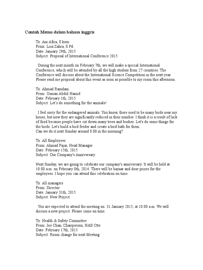 Memang bahasa dalam contoh memo bahasa inggris yang simple cocok untuk materi bahasa inggris.