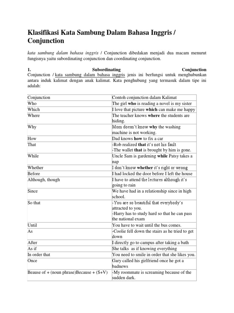Conjunction from image.slidesharecdn.com Untuk contoh kalimatnya dapat kita lihat sebagai berikut. Clause atau dalam bahasa ndonesia yaitu klausa. Anak kalimat merupakan kalimat tunggal juga namun menduduki jabatan dalam pola kalimat lain. Sebuah kalimat paling kurang mengandung subjek dan predikat. Even if the child is hungry, he will never eat oatmeal, but he will always eat ice cream./bahkan jika anak itu lapar, dia tak akan pernah. Ada empat jenis atau tingakatan kalimat dalam bahasa inggris. (keseimbangan rasa dari kari ini sangat luar biasa). Ada banyak bahasa latin yang masih digunakan dalam bahasa inggris hingga saat ini, dan singkatan e.g.